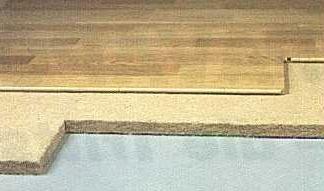 Een vloer opbouw met een massief delen houten vloer kan ook de nodige isolatie opleveren. Wederom vanaf de betonvloer maar nu alleen het vochtscherm. Geen egaliseer korrels. Direct op het vochtscherm wordt nu de Pavapor gelegt. Hierop de vloerdelen zweven verlegt. De vermindering kontaktgeluid VM = 25 dB.