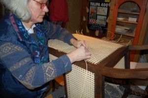 Maar ook werkt zij in opdracht om stoelen weer te voorzien van een nieuwe mat.