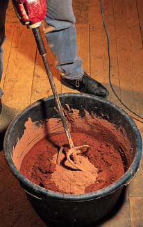 Werkwijze Meng een standaardzak van 25 kilo Tierrafino (goed voor crica 7-11 m2) in een schone kuip met 6-7 liter water. Blijf roeren net zo lang tot er een homogene massa ontstaat. |