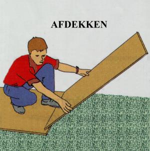 Nadat er bij de deur is geeindigd en de gehele vloer op hoogte is gebracht, liggen daar nog steeds de rei-railsen in de Pavalit. Tijdens het leggen van de afdekplaten worden tevens de rei-railsen/latten verwijdert. De onstane veuren worden handmatig opgevult met Pavolit. Er mag nog steeds niet in de Pavalit gelopen worden ter voorkoming van ongelijke verdichting.
